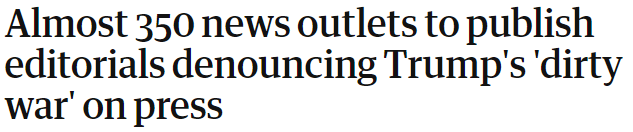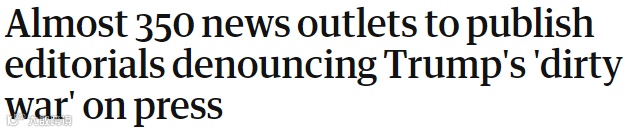 卫报:大约350家新闻媒体将发表社论,谴责特朗普对媒体的“肮脏之战”。