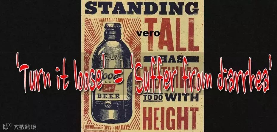 库尔斯啤酒将其口号“Turn It Loose(放松一下)”翻译为西班牙语,而这在西语口语中表示腹泻之意。