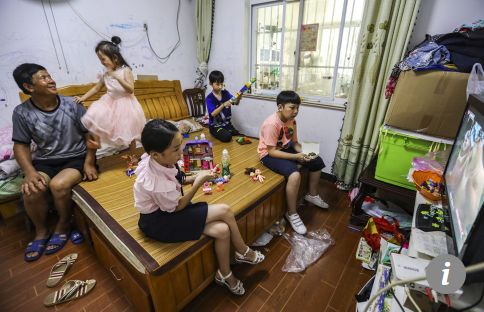郭蕊和其他几位小演员正在杭州拍摄一部探讨亲子关系的电影,他们必须冒着酷暑拍戏。