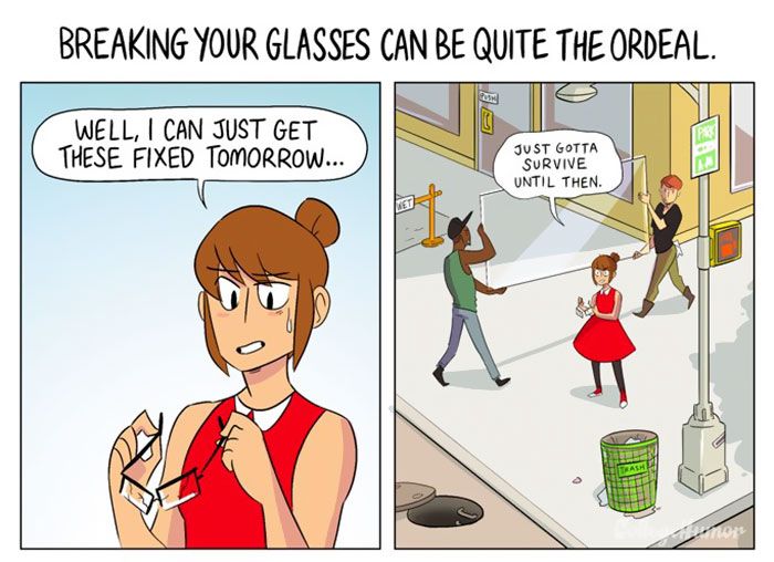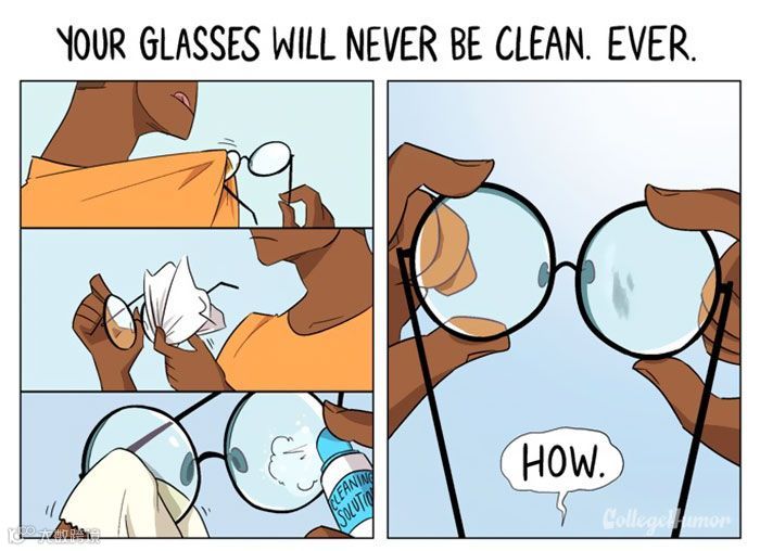 今天,双语君(微信ID:Chinadaily_Mobile)就通过一组漫画带大家领略一下眼镜侠们的辛酸日常。