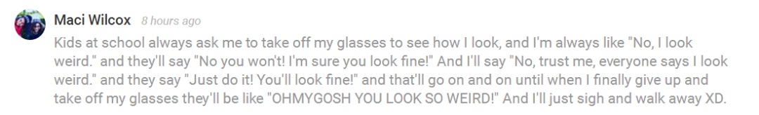 他们仍坚持,“摘下眼镜吧!你会好看的!”