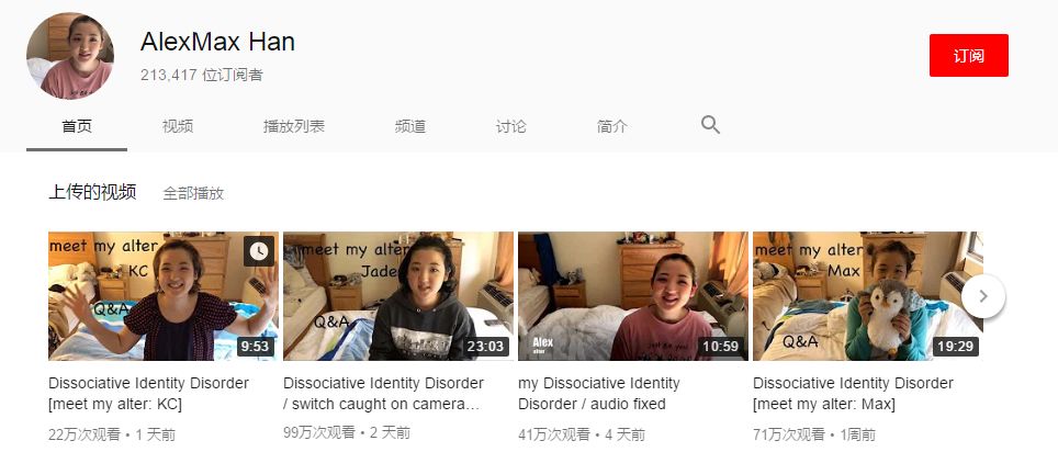 Alex性格外向开朗,喜欢化妆,想做美妆博主,所以拍摄Youtube视频也是她的主意。到目前为止每一个的视频,都是Alex剪辑和上传的。
