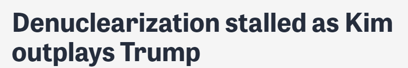 朝鲜正在推动美国履行结束朝鲜战争的声明,而美国则要求朝鲜宣布对其核武器和导弹进行全面清查,并制定拆除核武器核导弹的时间表。双方都没有动摇,特朗普和金正恩之间的气氛越来越糟糕。