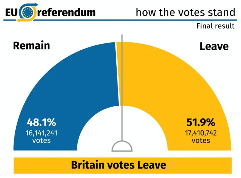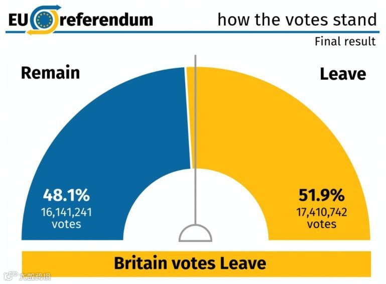 51.9%对48.1%的小胜使得这个国家陷入了中间分裂的状态,首相卡梅伦也因此辞职。