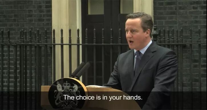 “我将向议会提议,让英国人民在6月23日星期四通过一个是走还是留的公民投票来决定我们在欧洲的未来。”