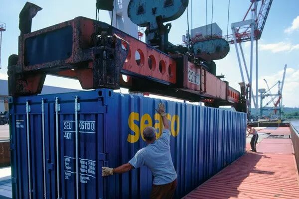 中国造集装箱正被装上货船