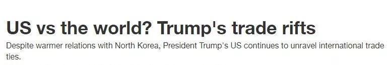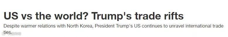 文章指出,美国虽然与朝鲜关系出现缓和,但是他的贸易政策却让美国与世界割裂开来。