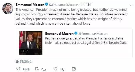 马克龙试图劝阻美国盟友征收关税的决定,但特朗普似乎并不听劝……马克龙也毫不客气,直接在推特上表示“我们不介意G7变G6”……