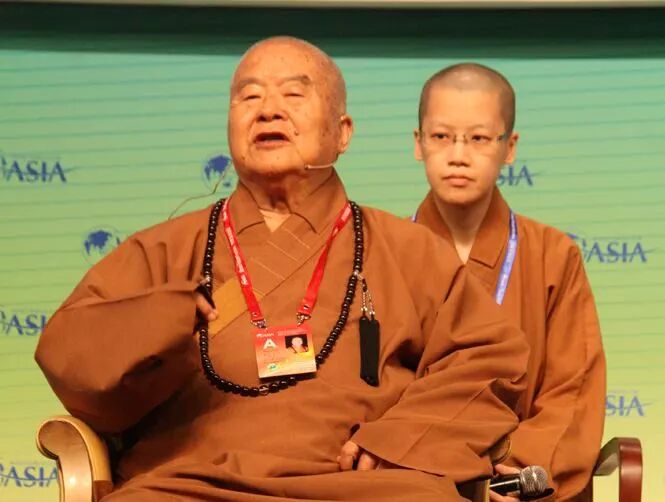 讲座者,是大名鼎鼎的佛光山星云大师,他身后瘦削的女翻译,是他的首席翻译妙光法师。
