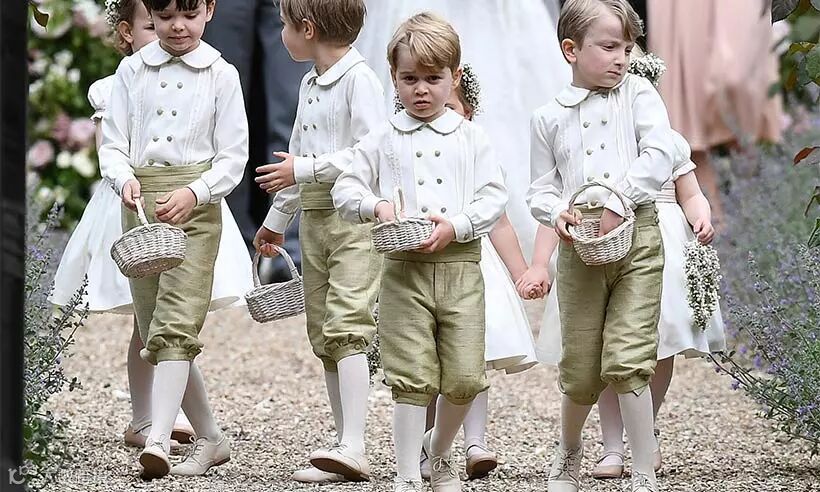 参加小姨皮帕的婚礼时,乔治小王子的花童造型十分抢镜。