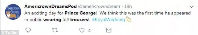今年哈里王子和梅根的婚礼上,小王子第一次被允许在公众面前穿长裤。