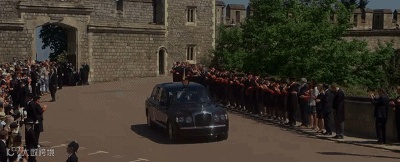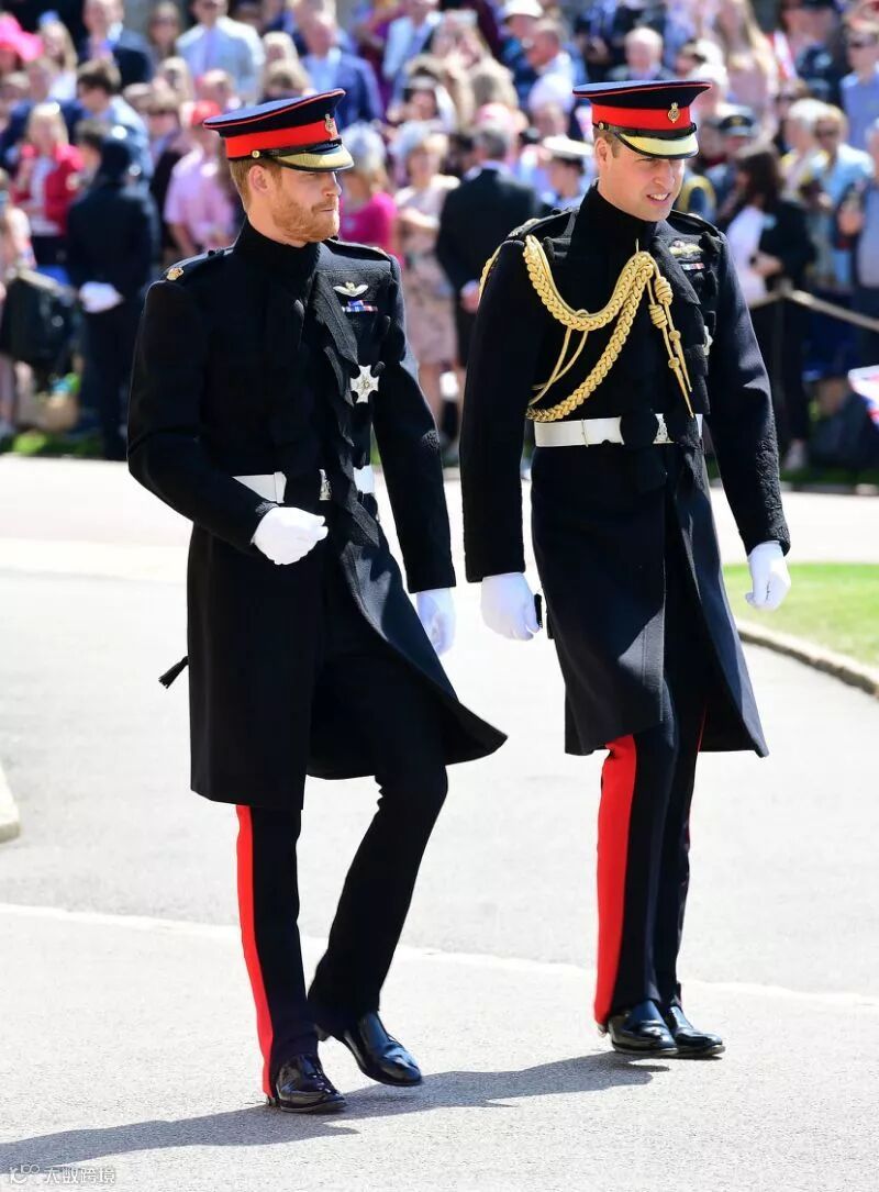 哈里王子和他的伴郎剑桥公爵(威廉王子)一起步行去往了圣乔治礼拜堂,并到达教堂西阶。