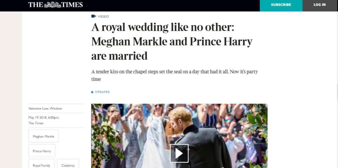 泰晤士报:《一场不同寻常的皇室婚礼:梅根与哈里喜结连理》