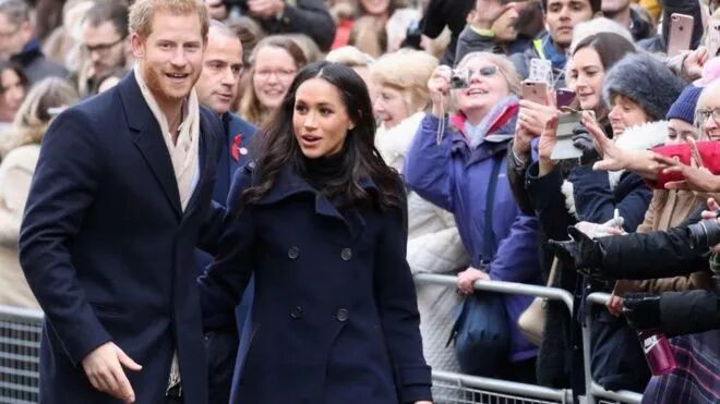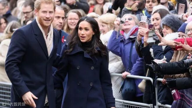 去年12月梅根在诺丁汉所穿的海军蓝大衣在网上迅速售罄 图源:BBC