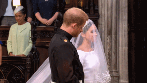 婚礼的仪式部分在温莎古堡内的圣乔治礼拜堂进行,教堂内有600人一同见证了这对新人交换誓言的美好瞬间。