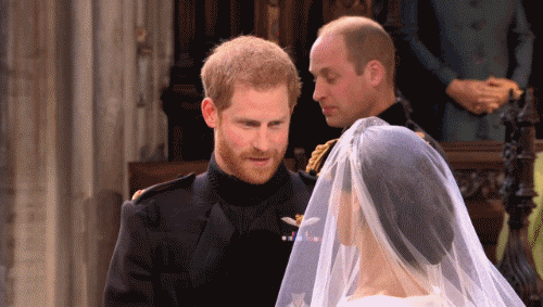 而此刻,等待新娘来到身边的哈里王子脸上也洋溢着幸福和陶醉的神情。