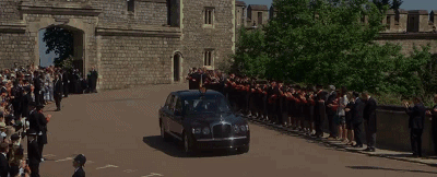 The bride and groom left Windsor Castle in a carriage for a roughly two-mile procession, traveling along the High Street through the town of Windsor, before returning to the castle by the Long Walk. The procession has taken around 25 minutes.