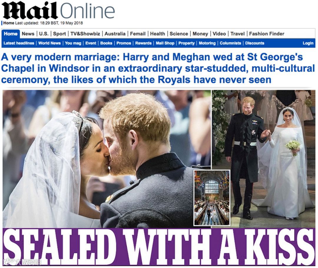 每日邮报:《一场非常现代的婚姻:哈里与梅根在温莎圣乔治礼拜堂举行婚礼,一场从未在皇室见过的典礼——星光熠熠而具多元文化》