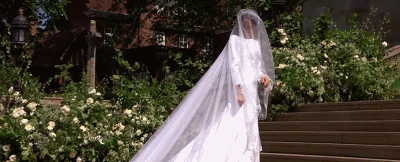 来看梅根到达婚礼现场,身着婚纱惊艳亮相的一刻: