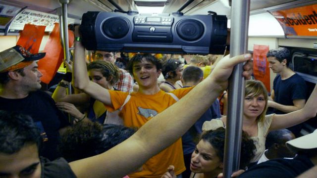 When in public, don't play music or watch videos on your mobile devices with the speakers on.