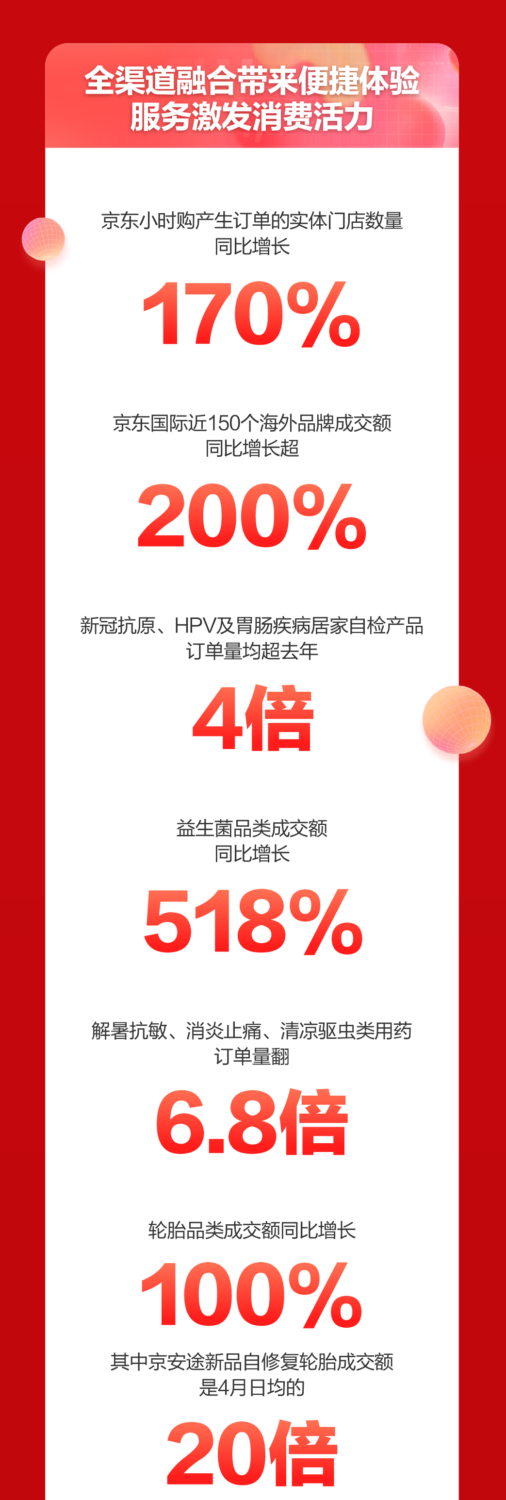 京东618带动数百万家线下实体门店,实现线上线下同频;并通过包含185项基础服务及上百项环节保障,为用户提供“全链路服务”。