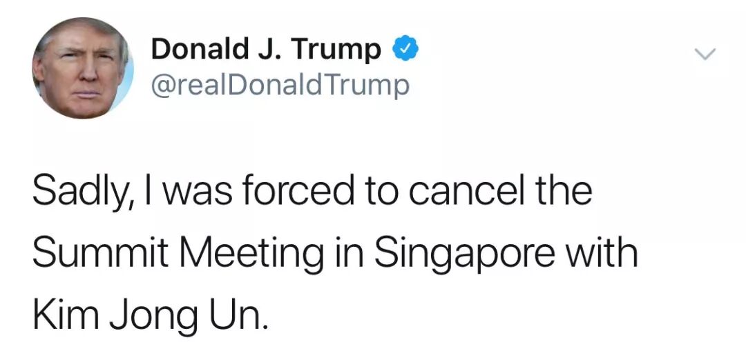 很遗憾,我被迫无奈取消了和金正恩在新加坡的峰会。