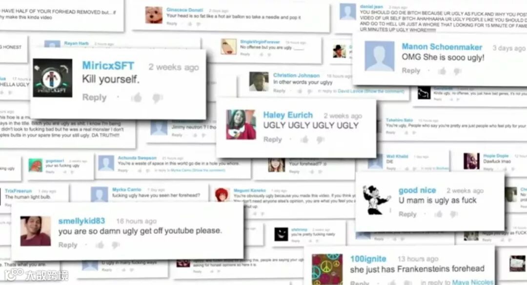 然后,她收到了1万3千多条评论,有很多人用恶毒的语言告诉她,她非常丑!