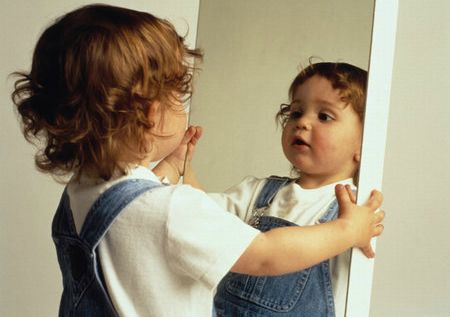 当前她最喜欢做的事情就是盯着镜子里的自己。她非常喜欢自己在镜中的样子。她咯咯笑着、叫着,然后给了镜中的自己大大的、湿乎乎的吻。太美好了。