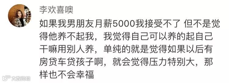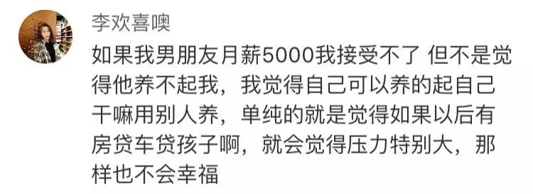 网友们的普遍意见则觉得女生不需要男生养……但是5000块,谈个恋爱结个婚还是压力很大的……
