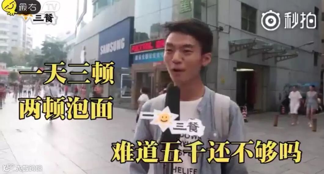 在一个街采视频中,一些女生的反应是难以置信,“一个月5000怎么够?”