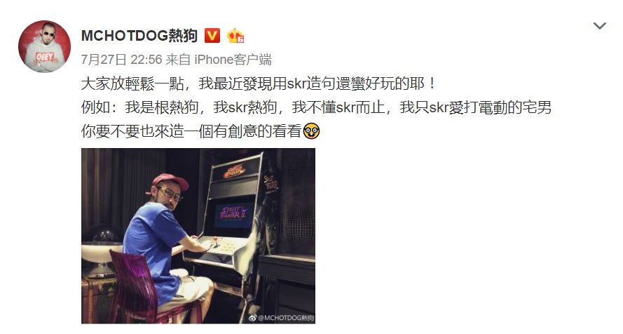 今年,他又担任了《中国新说唱》(The Rap of China)的制作人,在节目中和平时的微博中,喜欢使用skr,让更多人接触到了这个词。