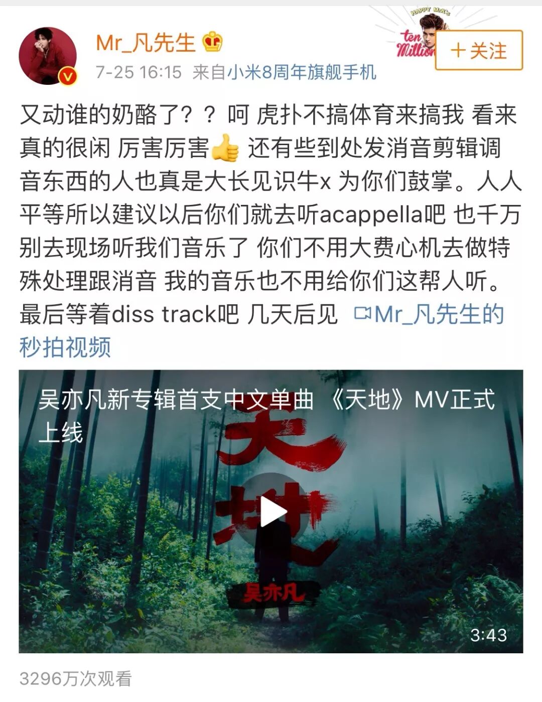 吴亦凡本人也在微博上做出了回应,表示要diss回去。