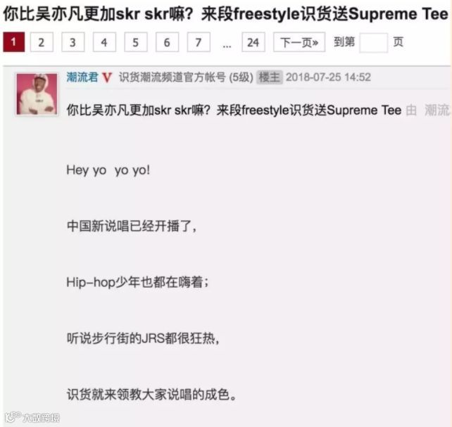 虎扑JRs还挖出了吴亦凡此前在综艺节目的即兴说唱(freestyle),指出吴亦凡说唱水平低,难以撑起他在节目中的制作人形象。