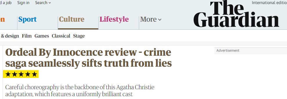 If the advent of spring seems like an odd time to give viewers the secular, murdery treat that is a Christie adaptation – this time of her 1958 story Ordeal By Innocence – well, that’s because it is.