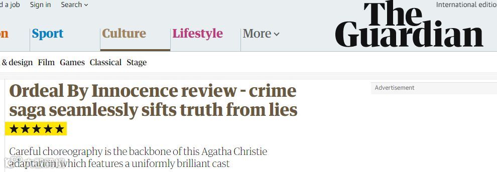 “精细的编排是这部阿加莎·克里斯蒂改编作品的基础,同时还有一个全员出色的卡司阵容。”