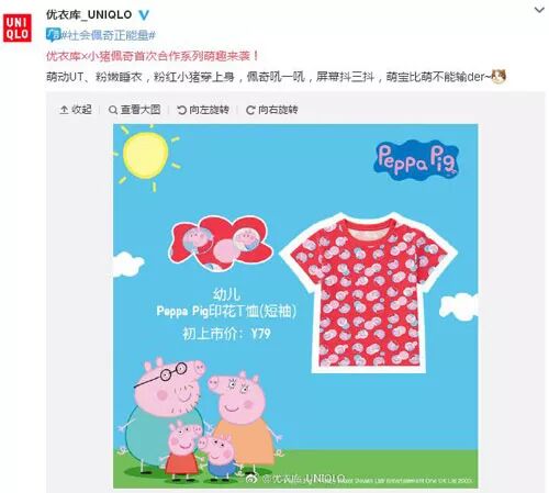 在娱乐圈吸了一波粉外,小猪佩奇还进军时尚圈,联手优衣库推出小猪佩奇儿童款T恤。