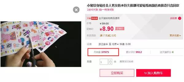在短视频平台的带动下,“小猪佩奇身上纹,掌声送给社会人”口号越喊越响,小猪佩奇纹身成了“社会人”标配,还顺手救活了一堆卖盗版贴纸的淘宝店。
