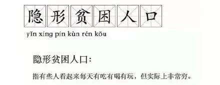 "隐形贫困人口"指那些花的比挣的多的人。他们通常讲究生活质量,在美食、衣服、健身房、水疗按摩以及其他日常支出方面开销很大,银行账户里基本没什么钱。