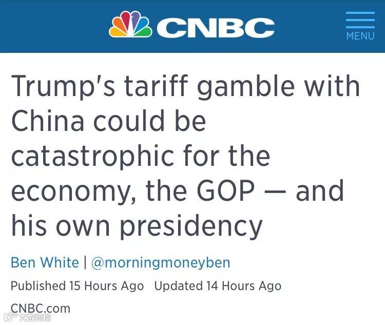 CNBC也评论称,这场“贸易战”是特朗普置一切于不顾的赌博。