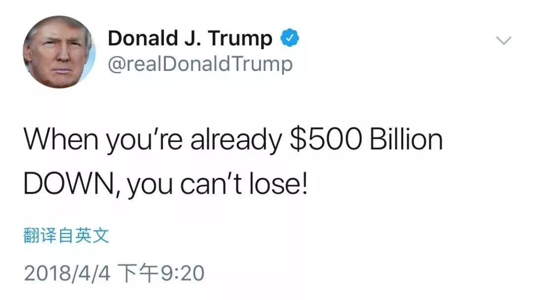 “当你已经损失了5000亿美元,你绝不能输!”特朗普本周早些时候的这条推特简明扼要地概括了这位总统对待贸易的态度: