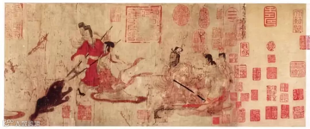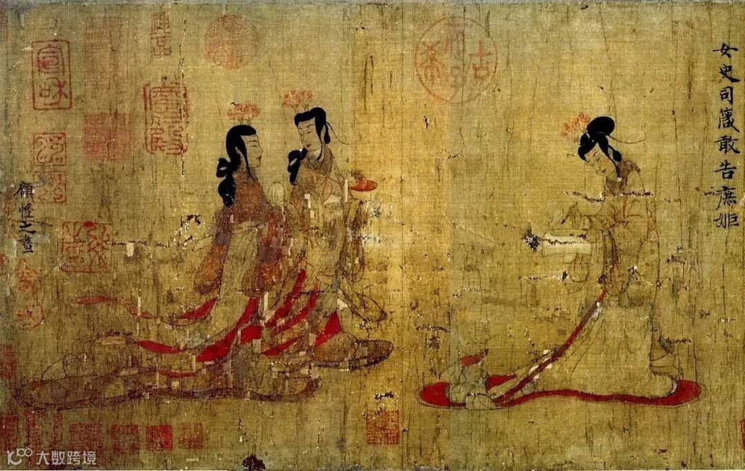 《女史箴图》长卷为顾恺之创作的绘画作品,原作已佚,现存有唐代摹本,原有12段,因年代久远,现存仅剩9段,为绢本设色,现收藏于大英博物馆。
