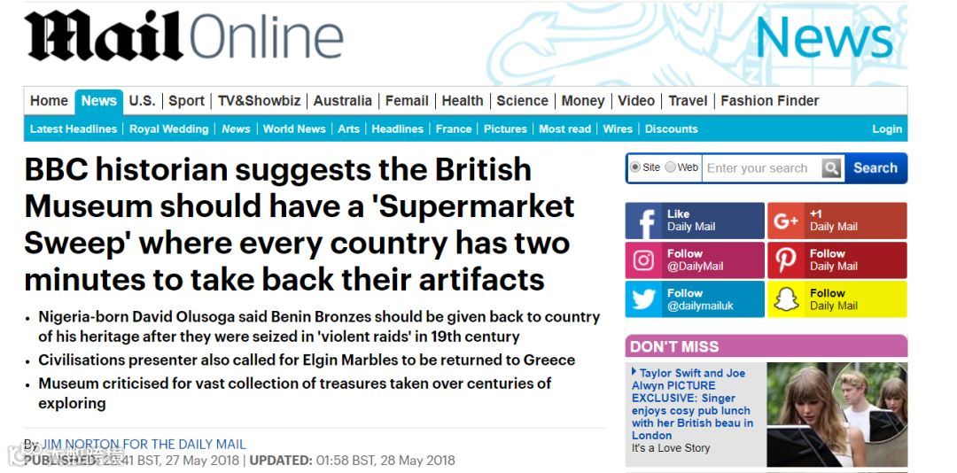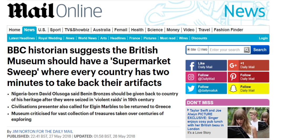 大卫·奥鲁索加也从英国的角度考虑,称归还各国的文物有利于维护英国和这些国家的关系: