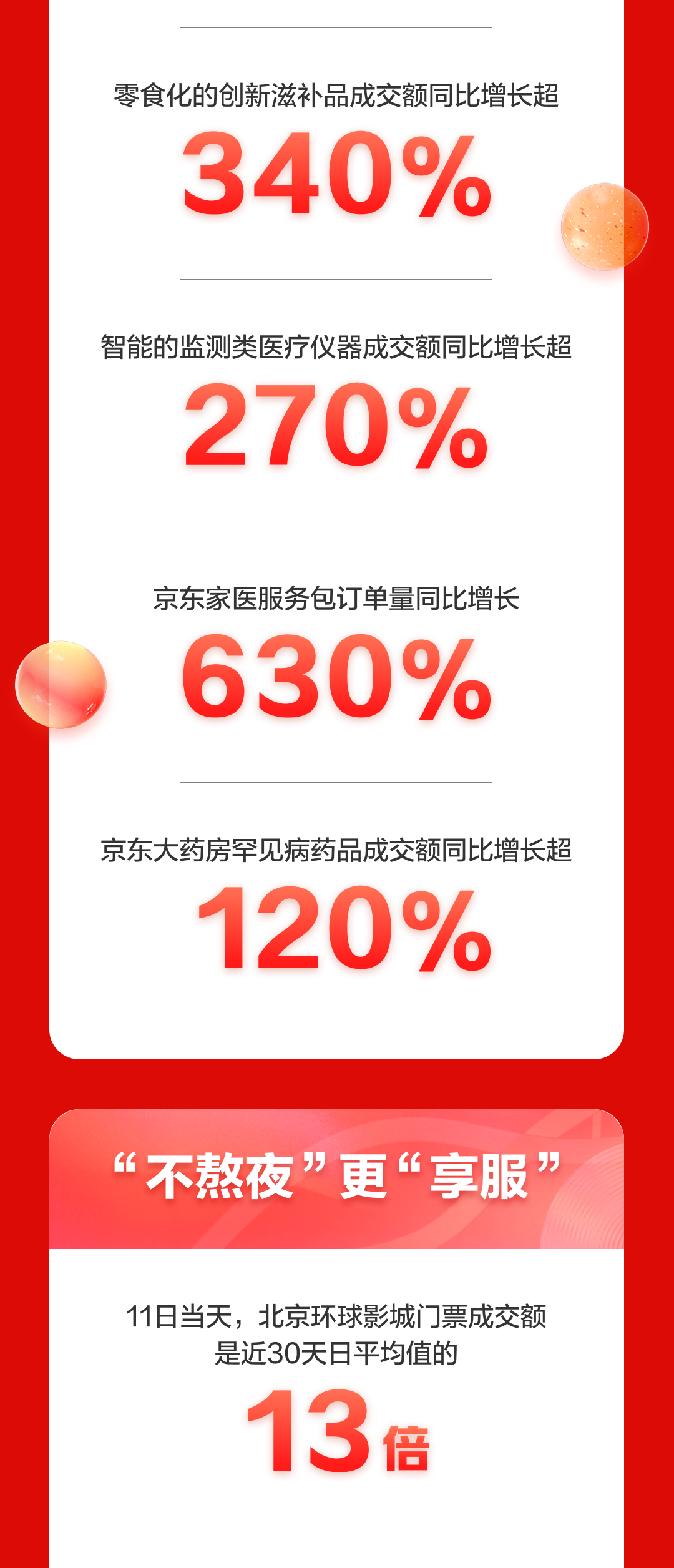 11日当天,京东健康互联网医院母婴专科的咨询量同比增长10倍,基因检测成交额同比增长16倍,HPV疫苗预约服务成交额同比增长超7倍,齿科口腔订单量同比增长近5倍,自检早筛和主动预防医疗服务的提升也透视出消费者健康理念的升级。