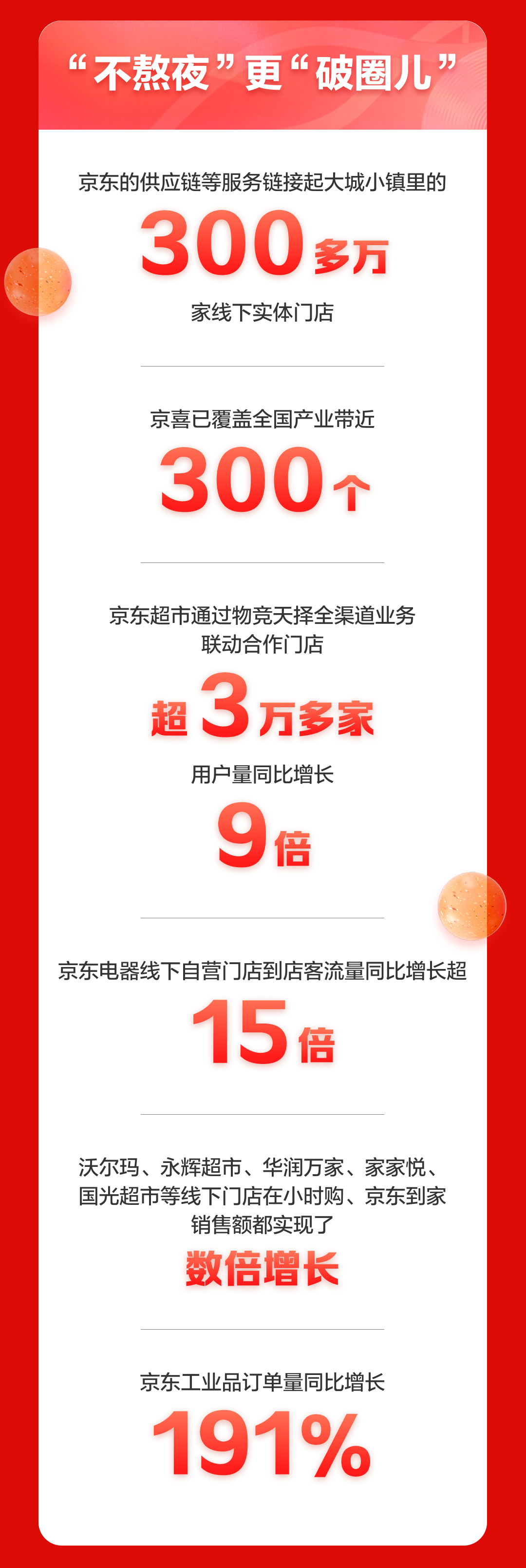 京东11.11期间,京东超市通过物竞天择全渠道业务联动超3万多家合作门店,用户量同比增长了9倍;京东电器线下自营门店到店客流量同比增长超15倍,覆盖全国2.5万个乡镇、60万个行政村的1.5万家京东家电专卖店门店,一半以上实现了成交额同比翻番,专卖店平均单价同比提升80%多,消费升级趋势凸显。