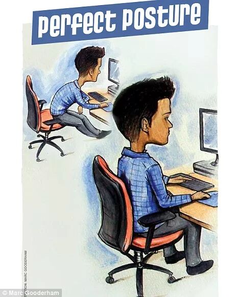 如果必须久坐,那就尽量保证坐姿正确吧:
