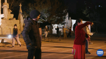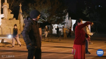 小哥的记者朋友就用镜头记录了广场上的身姿。