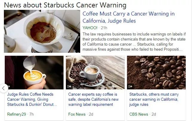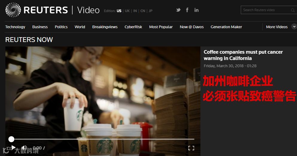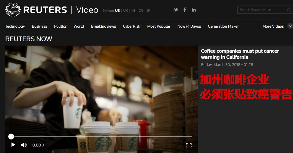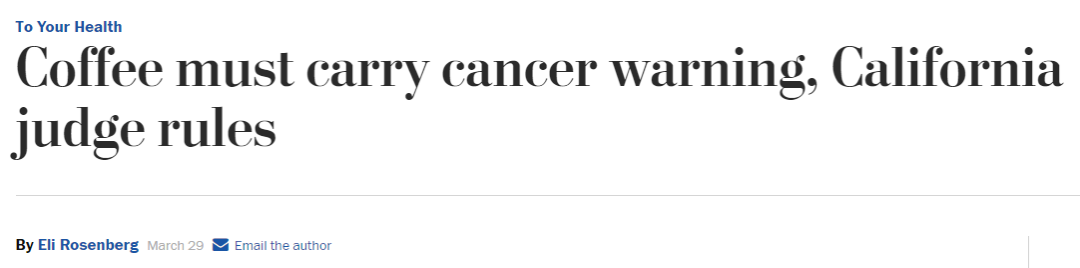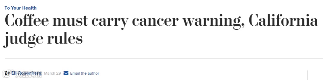 3月29日开始,路透社、美联社、华盛顿邮报等各大外媒齐刷刷地报道了加州法官裁定咖啡要标明致癌警告的消息。