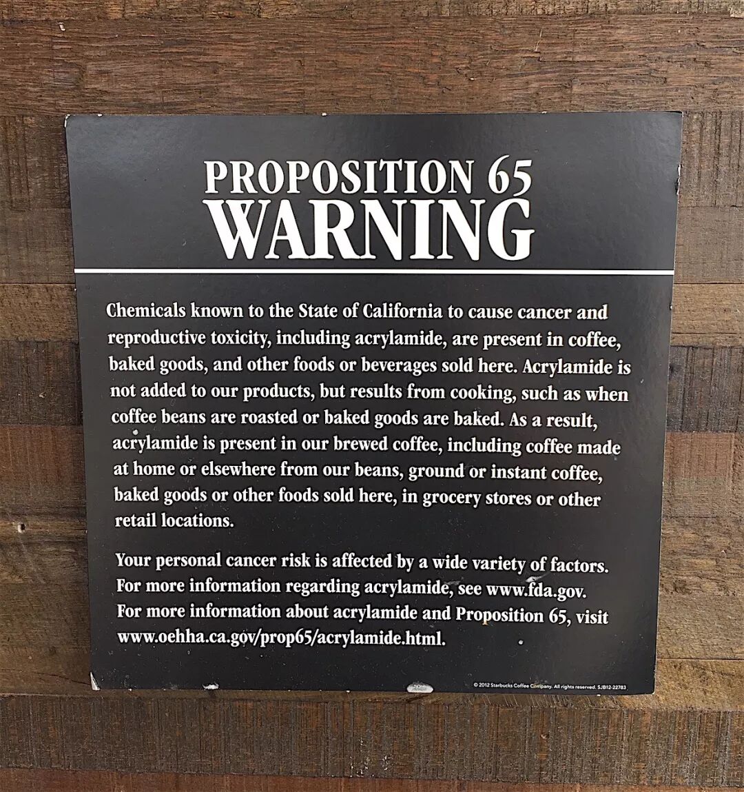 2010年,有毒物质教育研究理事会状告星巴克和其他咖啡商家,称他们违反了加州法律,对已知致癌物不能“提供清楚合理的警告”。