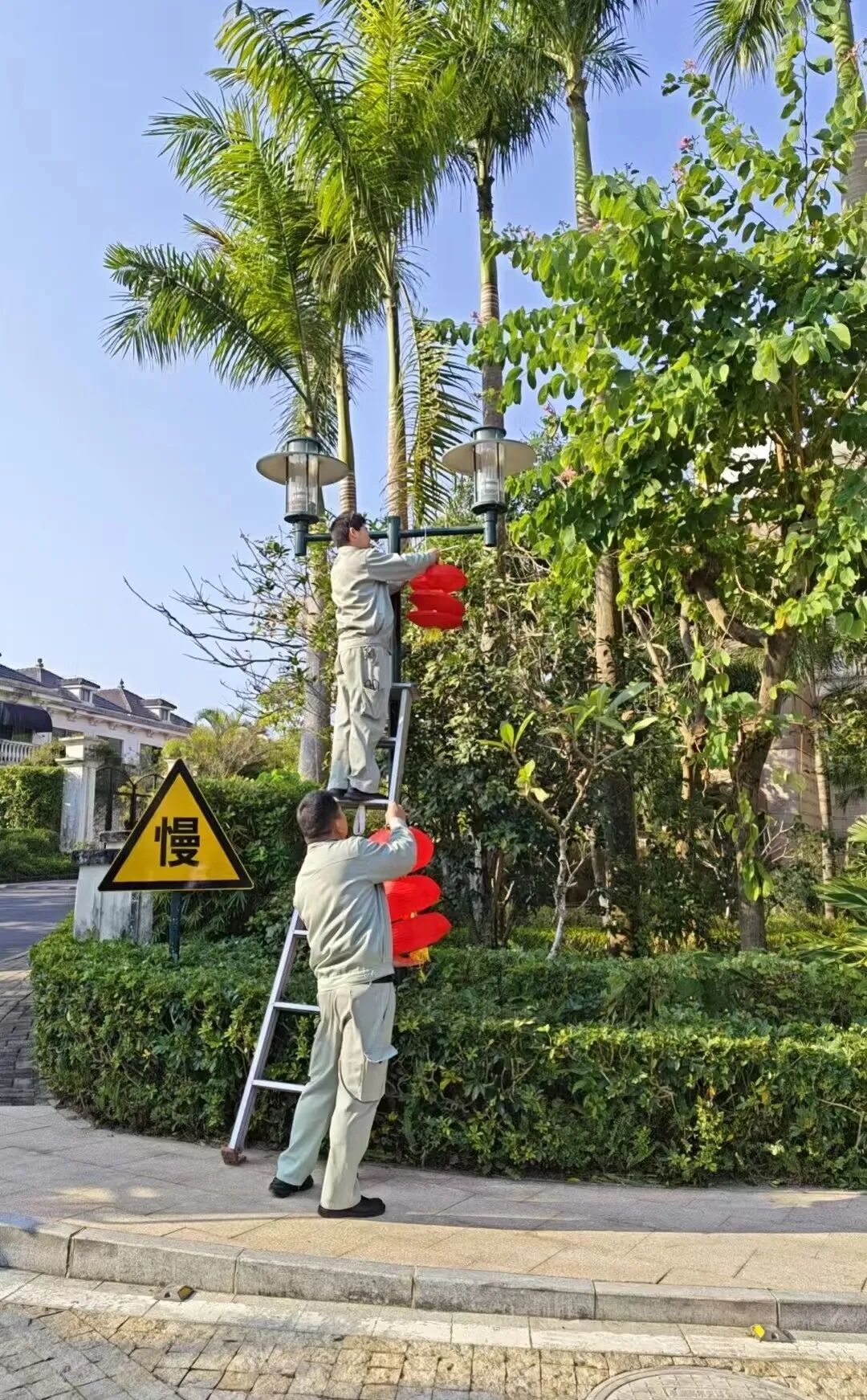 张灯结彩迎新年,齐心协力谱新篇!春节将至,为了营造喜庆祥和、温馨舒适的节日氛围,观澜湖各小区陆陆续续挂起来各种春节装饰,让小区换上“新装”迎接节日的到来。