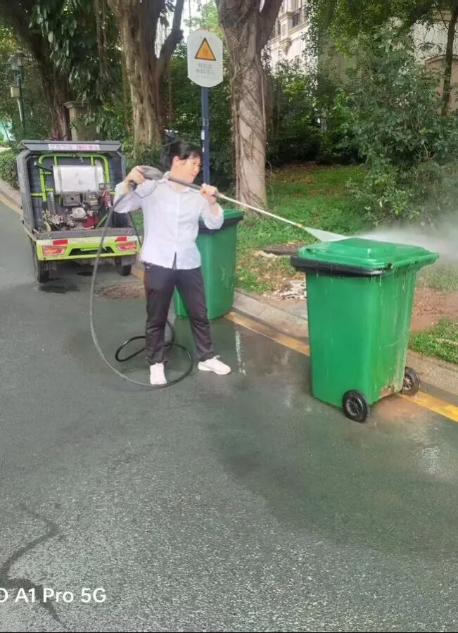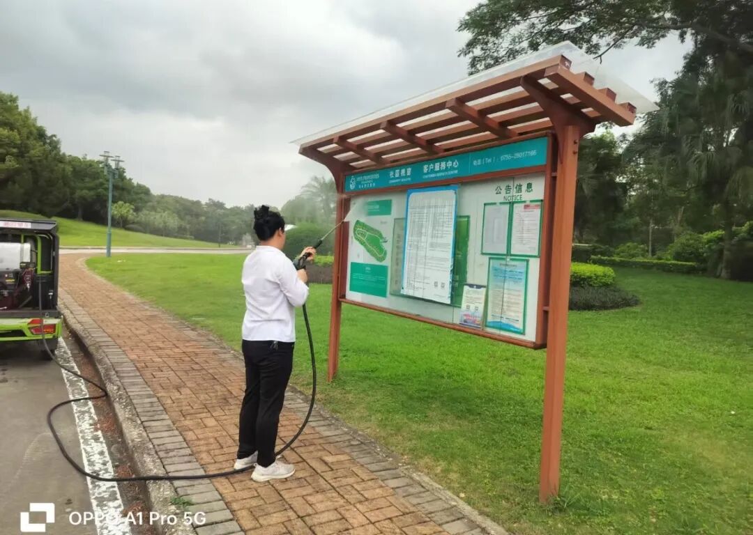 针对小区门面、主干道路面、垃圾分类点等重点区域,每周开展一次深度清洁作业,使用高压水枪配合专业清洁剂进行彻底冲刷,重点清除顽固污渍和卫生死角,确保环境卫生质量始终保持在优良水平。